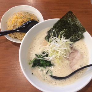 家系soba(750円) + 味玉(100円) + 半チャーハン(150円・お昼のみ)