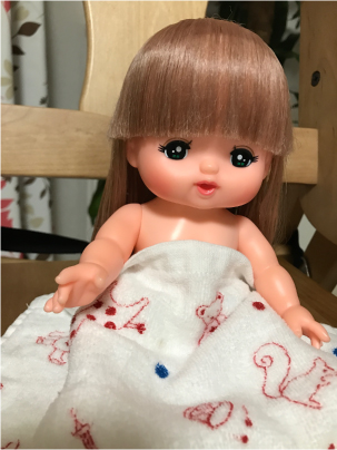 こちら娘のお友達「メルちゃん」。女の子がいるご家庭では定番のお人形ですね。