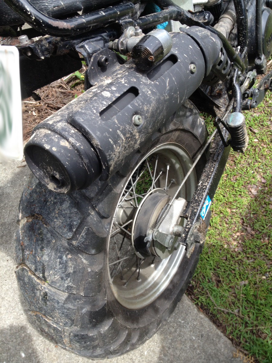 ストリートカスタム風のマイバイクをオフロード寄りにする為、足回りとマフラーの交換をしました。